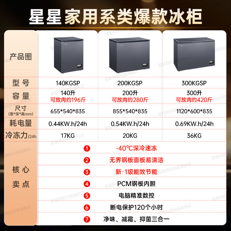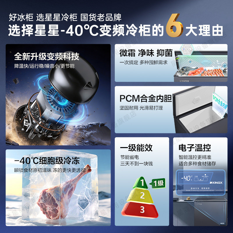 星星冰柜家用变频冰柜-40°C度商用冷藏冷冻柜低温冷柜官方旗舰店