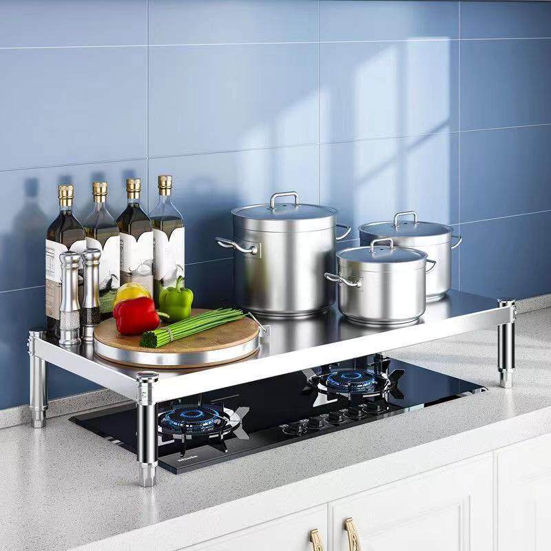 加厚不锈钢单层置物架燃气灶盖板电磁炉烤箱微波炉增高橱柜分隔架