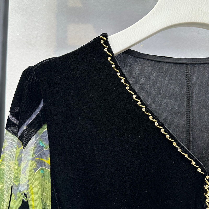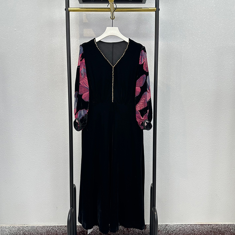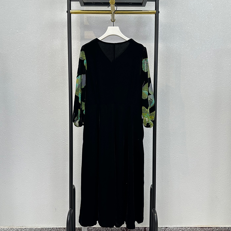 连衣裙高端真丝绒烧花妈妈裙子
