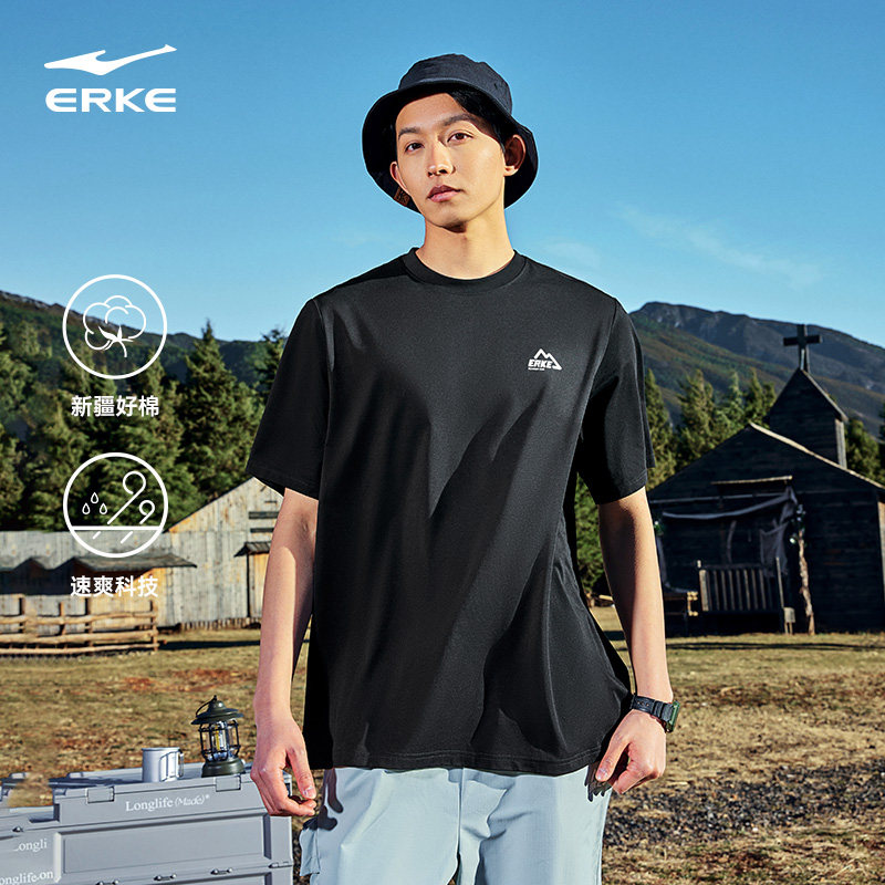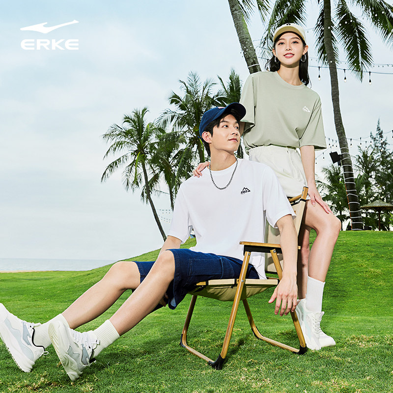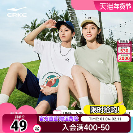 鸿星尔克短袖男秋季新款情侣棉感运动服宽松小山标速干t恤上衣女