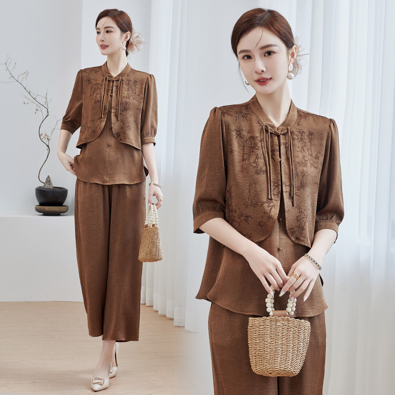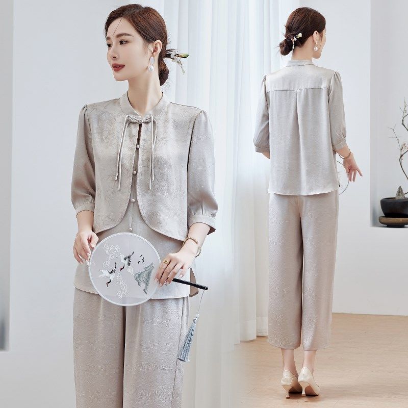 新妈妈春夏装洋气套装2024新款洋气中老年女装夏季短袖宽松两件套