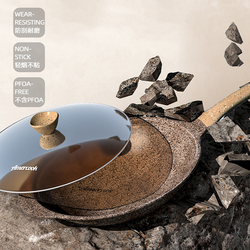 阿米尔花岗岩不粘锅炒锅煎锅奶锅