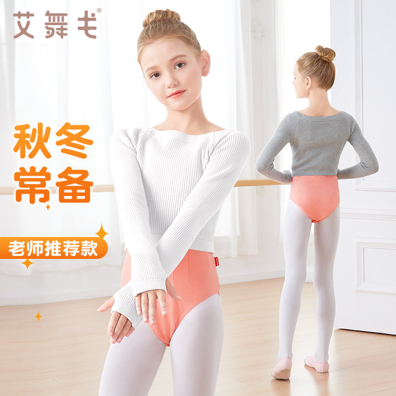 艾舞戈拉丁舞蹈毛衣儿童秋冬长袖芭蕾舞练功服女跳舞针织外套上衣