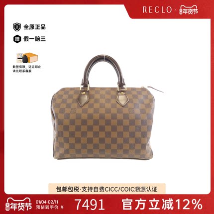 中古LV路易威登女包B级9新Damier Speedy波士顿棋盘格手提包时尚