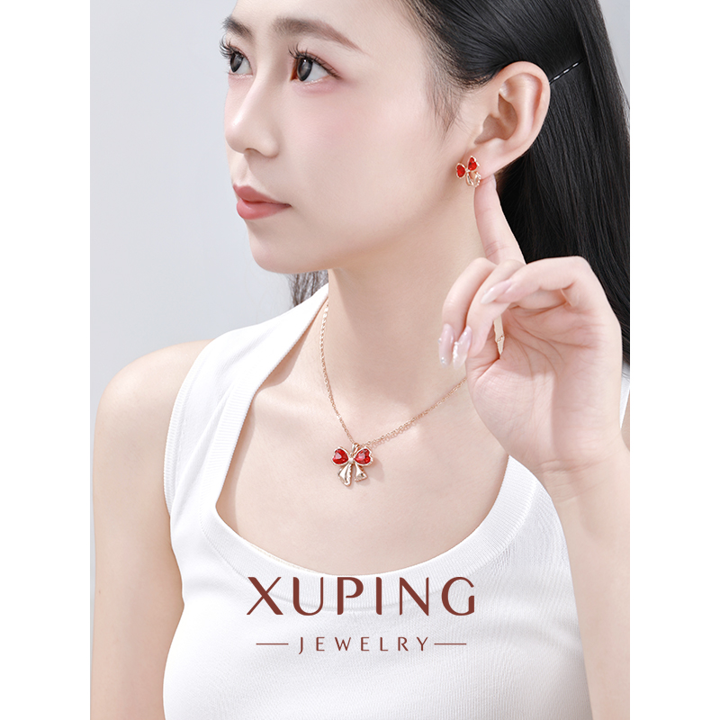 旭平仿水晶系列蝴蝶结耳钉项链两件套装时尚轻奢气质高级感配饰