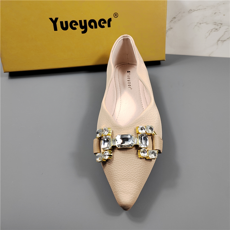 月芽儿专柜正品小香风真皮女鞋2025春季新款尖头浅口水钻平底单鞋