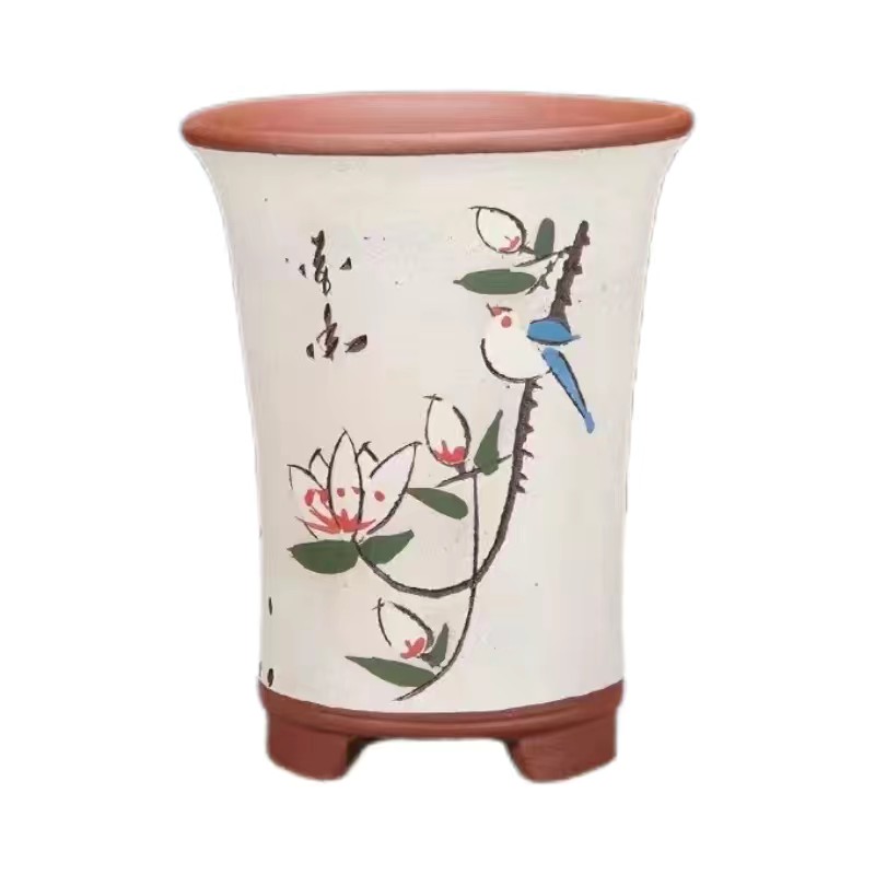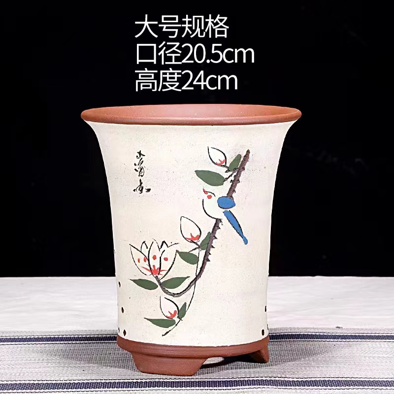 丁山紫砂黄段泥高兰刻绘春兰室内养草排水透气绿萝黄光陶瓷型花盆