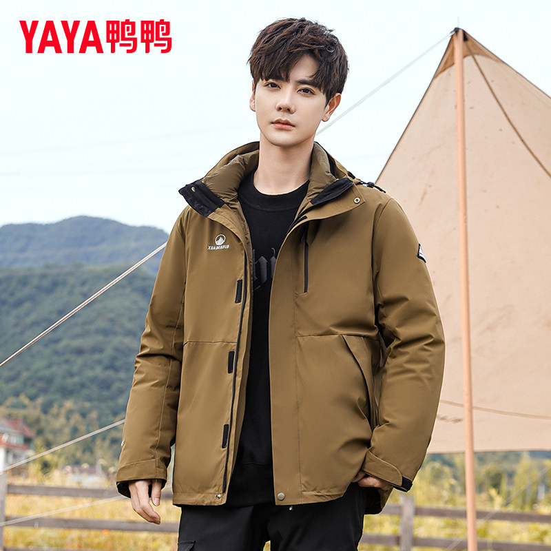 鸭鸭羽绒服男士新款短款户外工装防风时尚百搭外套可脱卸内胆II