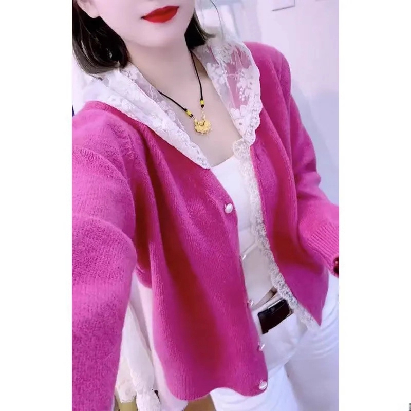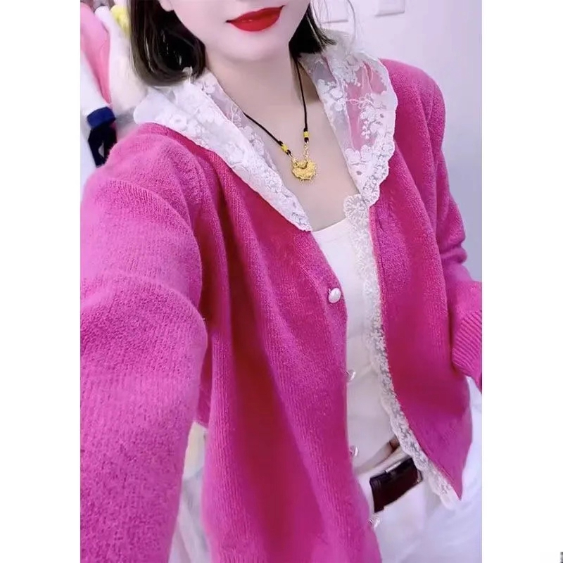 蕾丝长袖开衫秋冬新款毛衣上衣