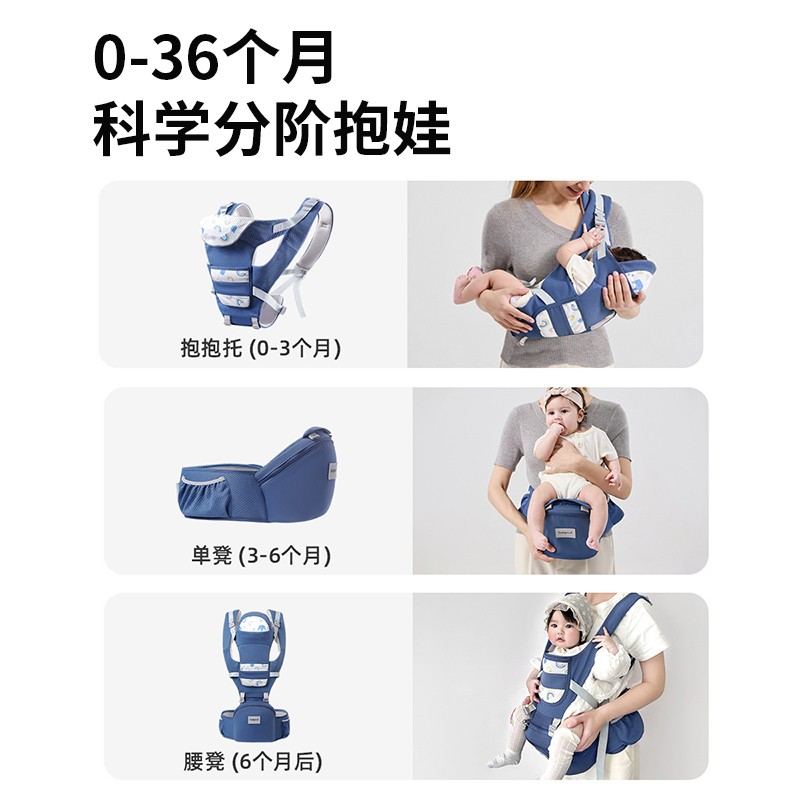 阿贝贝腰凳婴儿背带轻便透气外出二合一宝宝坐凳四季抱娃神器可拆