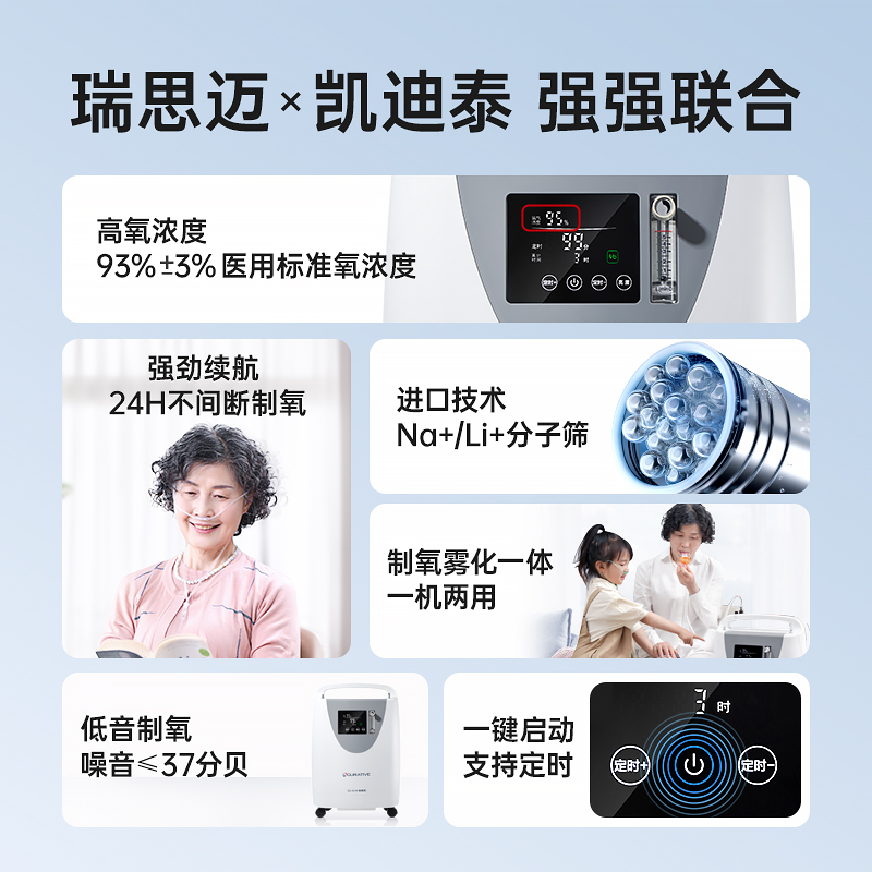 瑞思迈凯迪泰制氧机医用5L升老人家用吸氧雾化一体机肺气肿氧气机