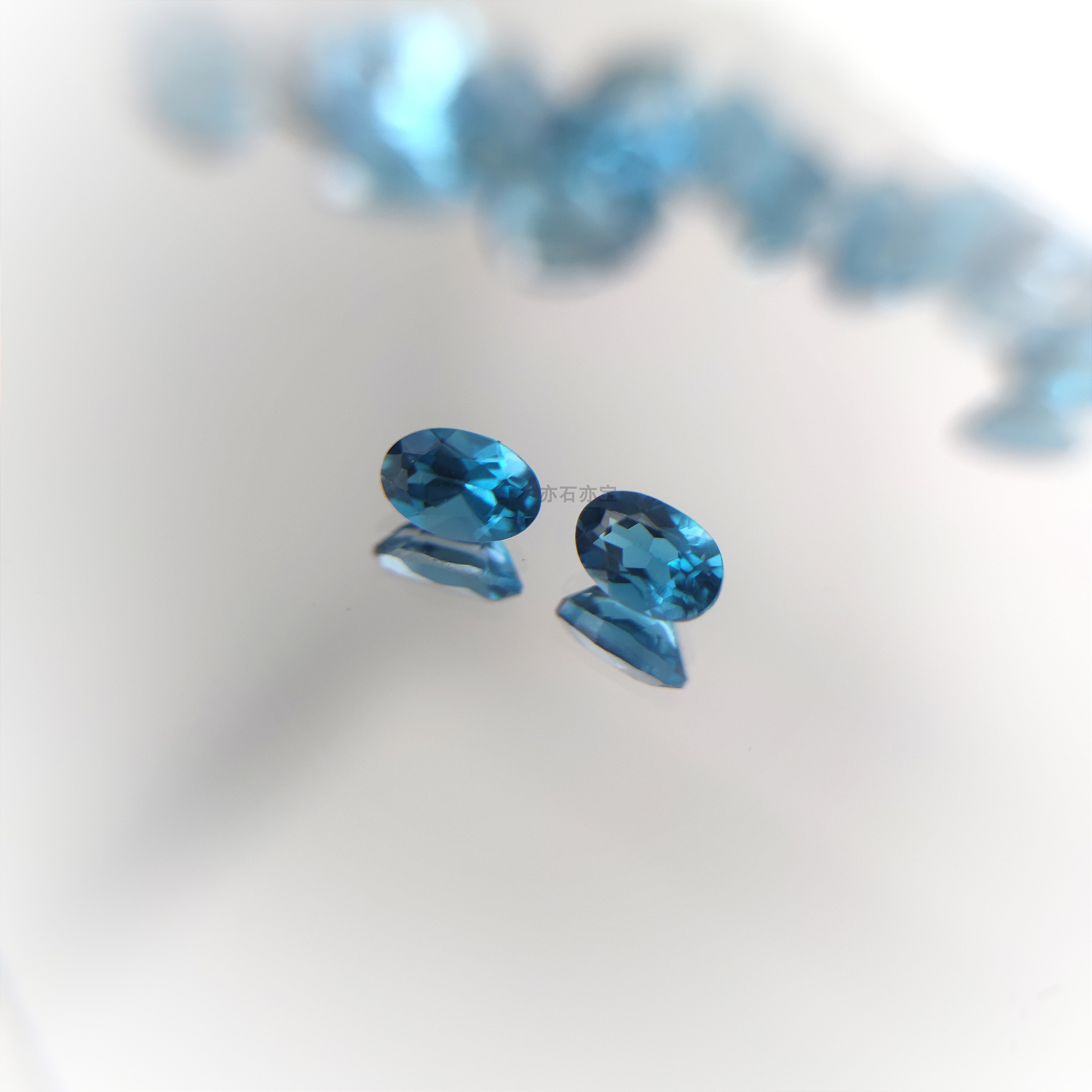 天然伦敦蓝托帕石全净裸石戒面方形圆形椭圆枕形马眼耳钉戒指diy