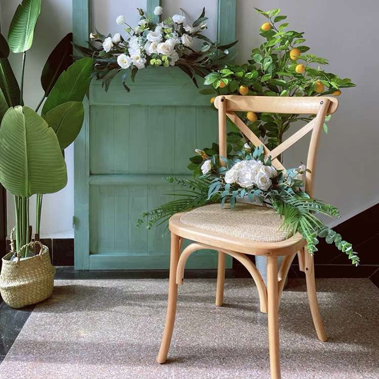复古法式靠背椅美式乡村实木餐椅家用酒吧餐厅婚礼简约藤编木椅子