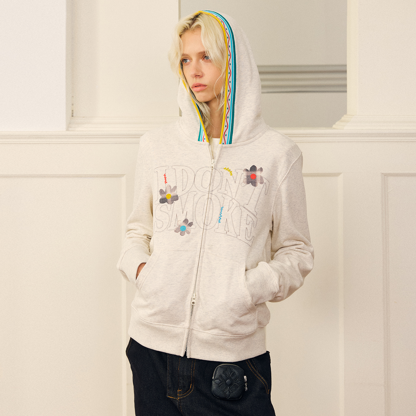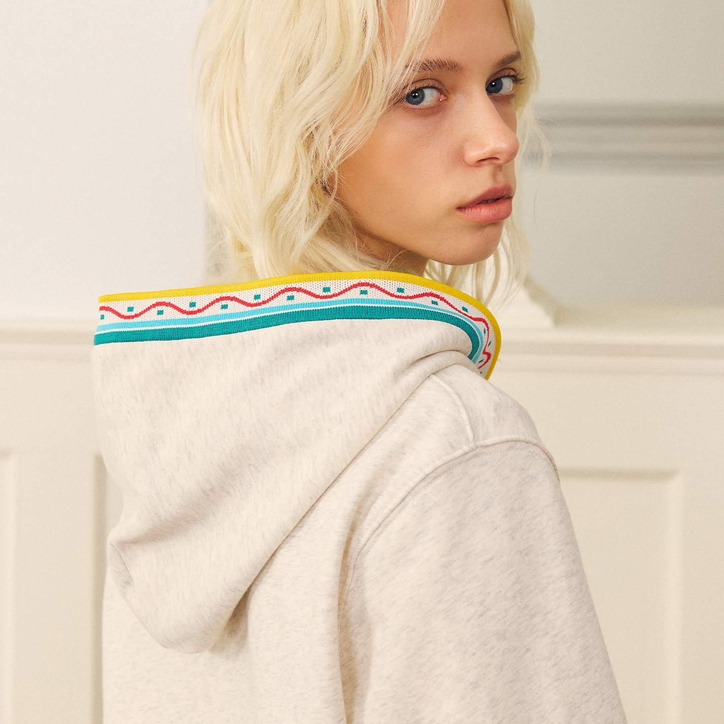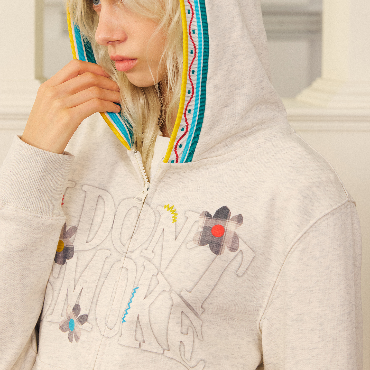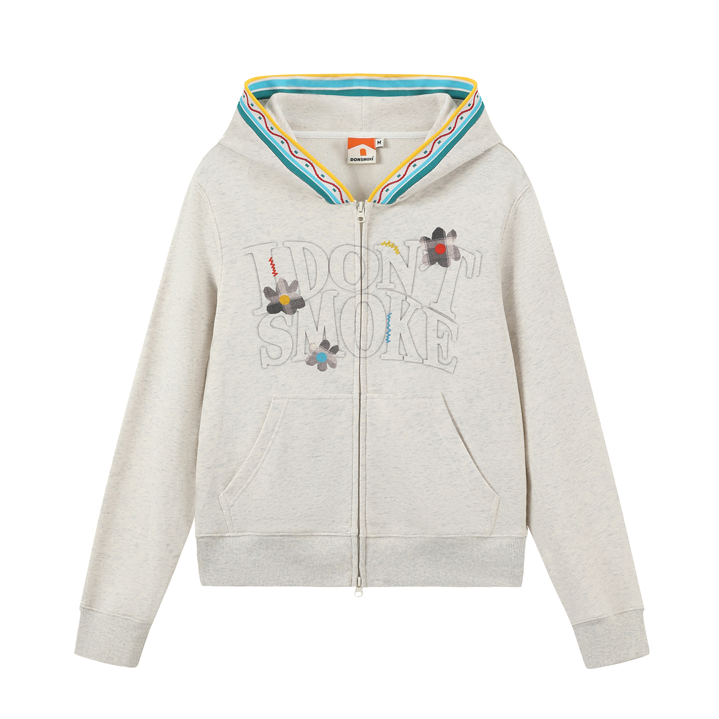 DONSMOKE正肩格子小花卫衣DSM撞色帽檐提花螺纹拼接撞色复古外套