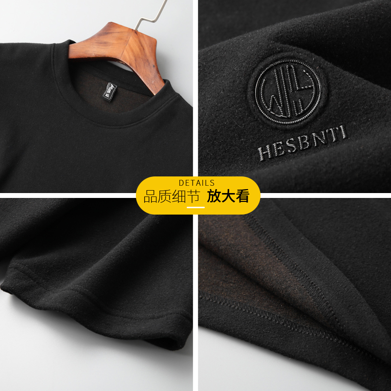 大码加绒短袖t恤男秋冬季新款磨毛加肥加大宽松胖子半袖羊绒体恤