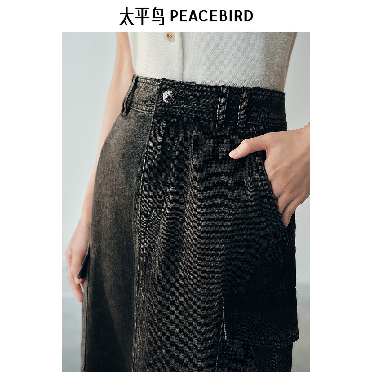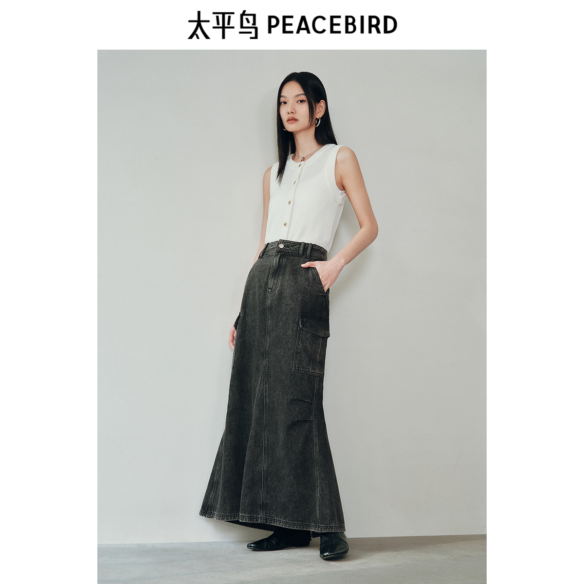 太平鸟鱼尾牛仔工装裙2025秋新款水洗摩登复古时尚半身裙长裙休闲