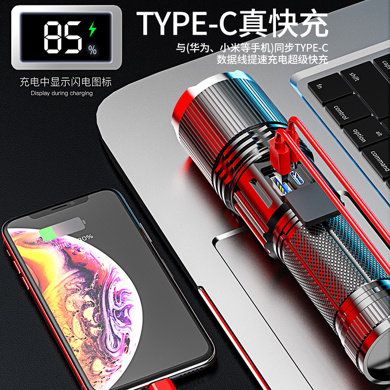 超亮手电筒强光充电户外激光家用小型迷你便携耐用多功能续航远射