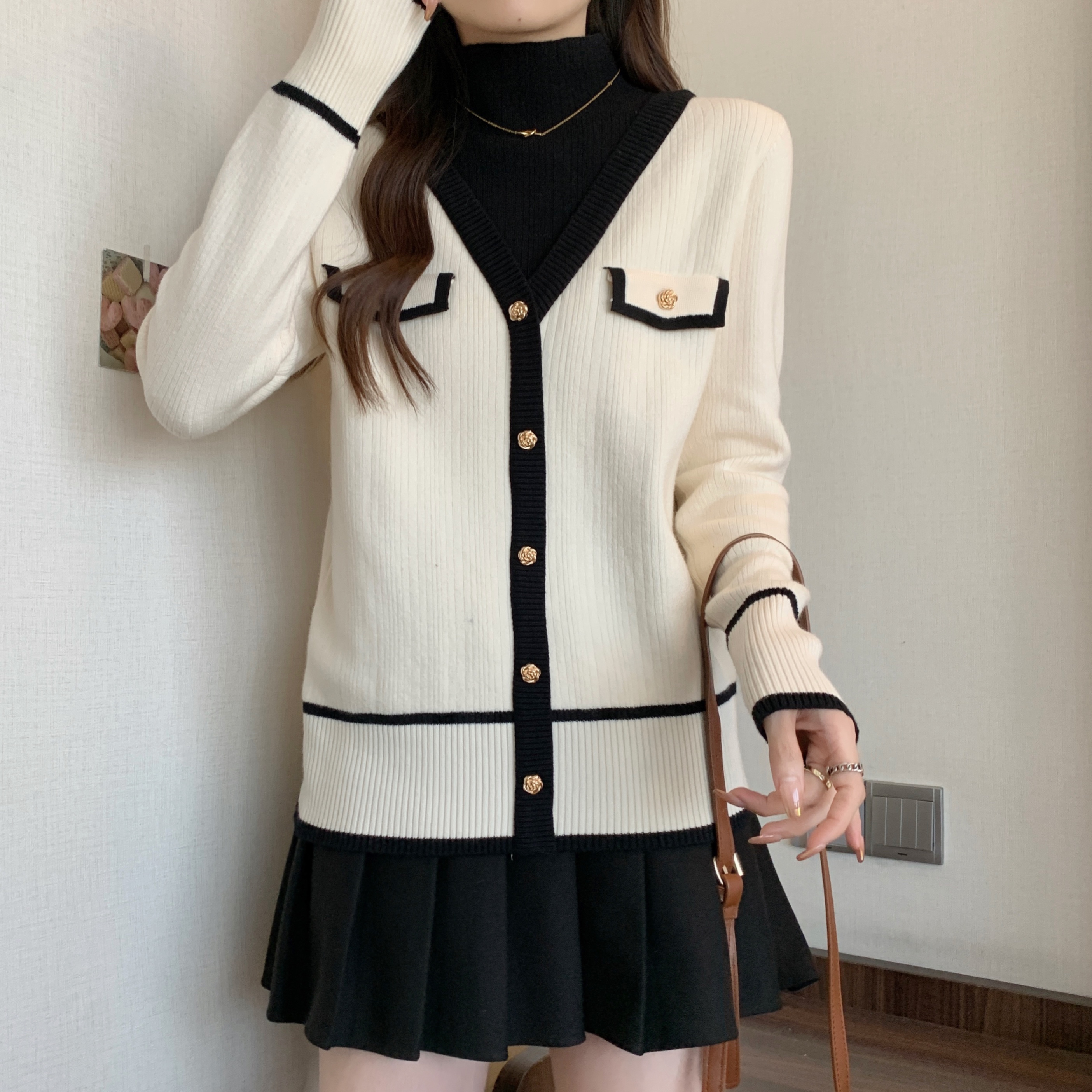 大码女装小香风气质套头毛衣女秋冬保暖半高领假两件打底针织上衣