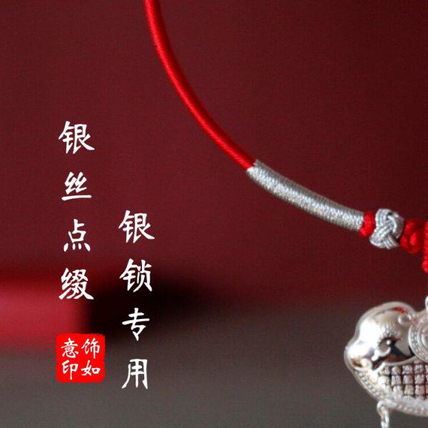 银长命锁平安挂绳红绳银手工儿童锁编绳专用吊坠婴儿小孩宝宝项圈