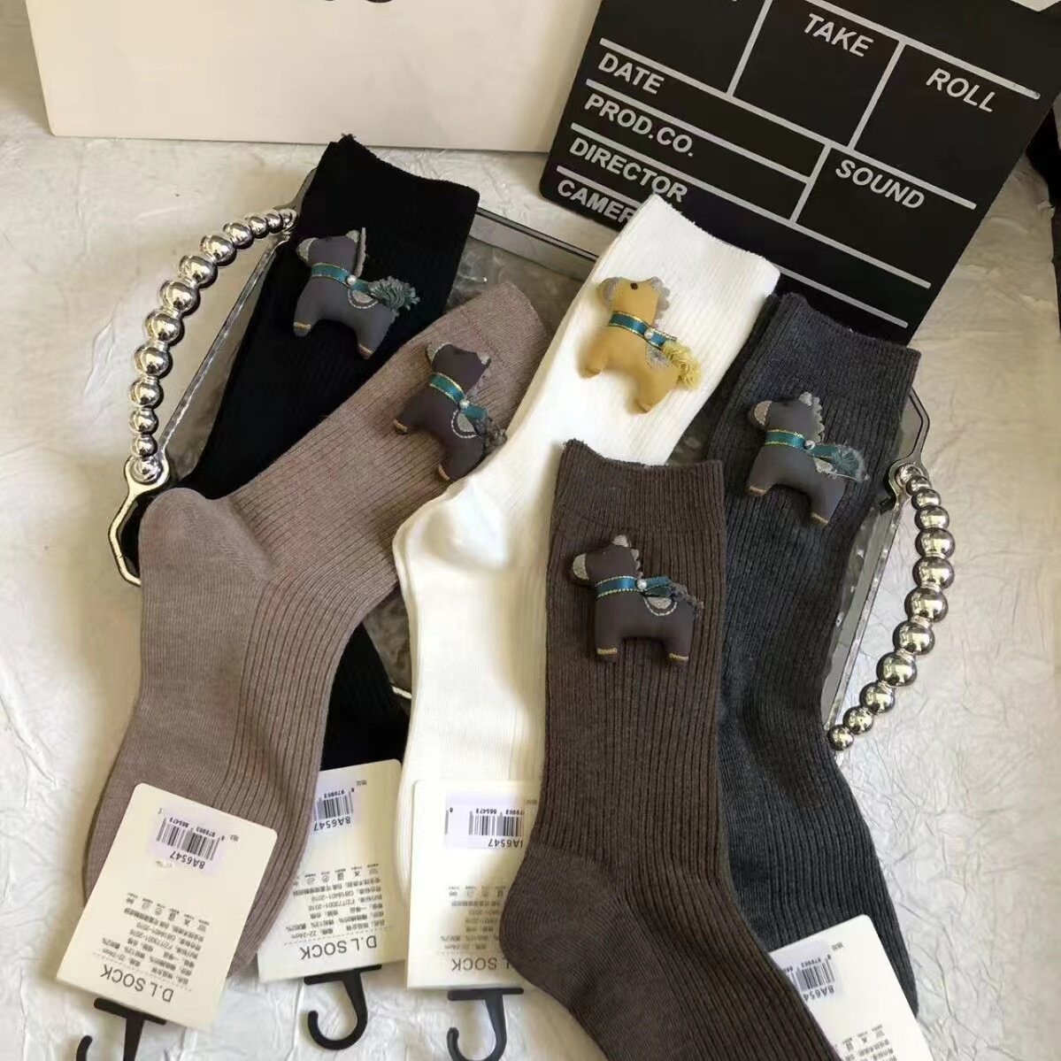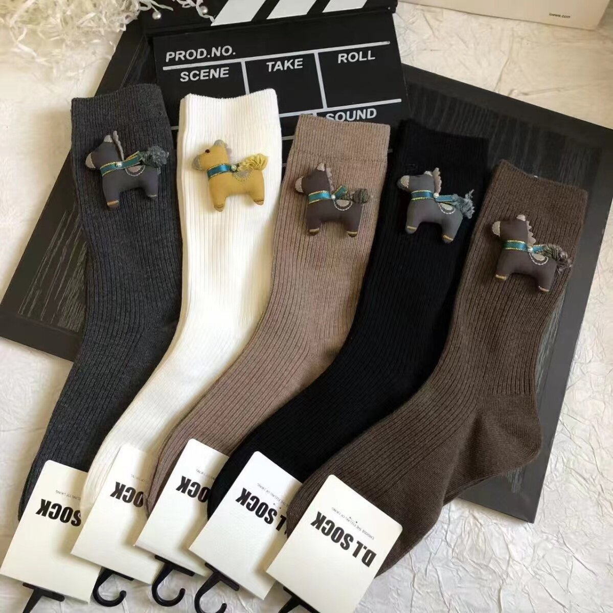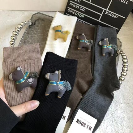 秋冬新款装饰袜女纯色可爱立体小马中筒袜韩版百搭饰品袜女士潮袜