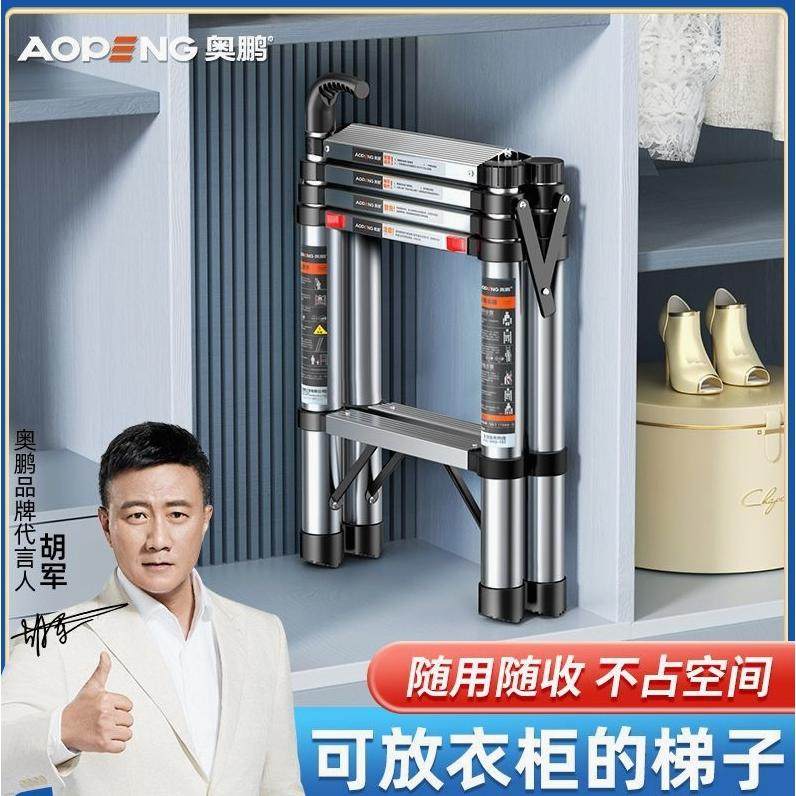 奥鹏多功能家用伸缩梯子加厚不锈钢折叠小梯子室内便携升降人字梯