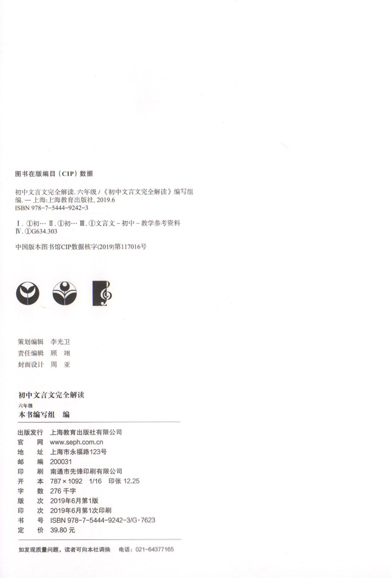初中文言文完全解读 六年级6年级 教材同步课内古诗文课文全解全析 初中课外文言文习题解答拓展阅读 上海教育出版 中学教辅