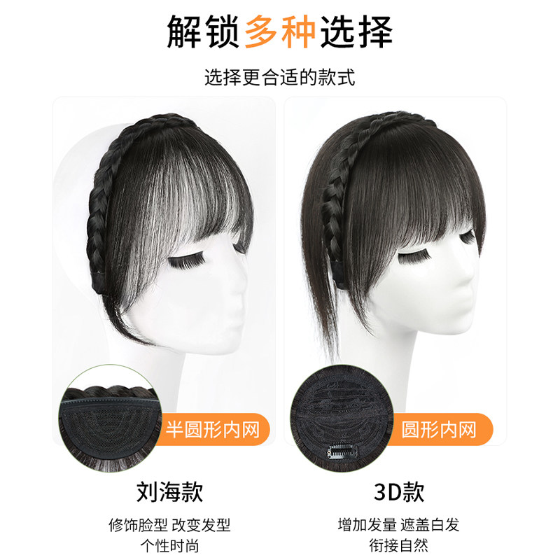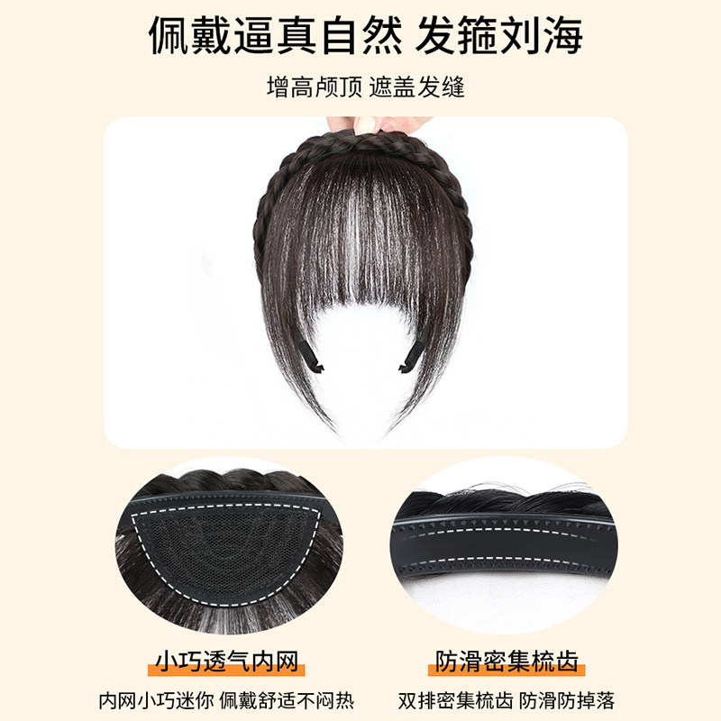 【骨折价】发箍款假发一体真发女片头顶遮白发前额法式刘海补发片