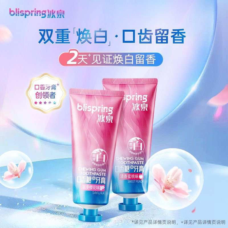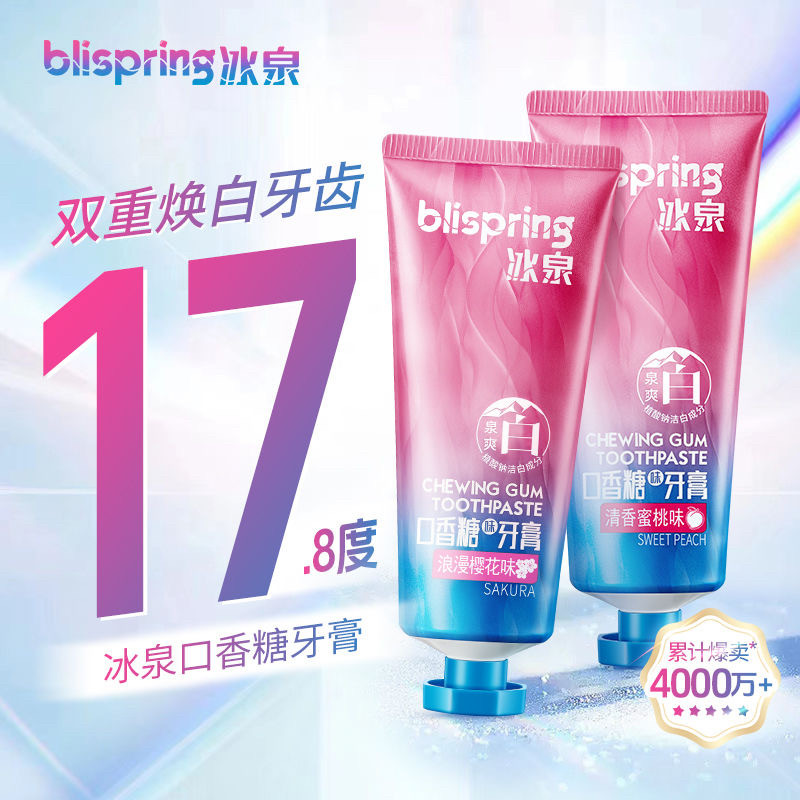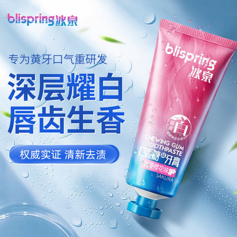 冰泉口香糖牙膏 冰泉 牙膏 泉爽白 白唇红味美白牙齿口腔爽白留香