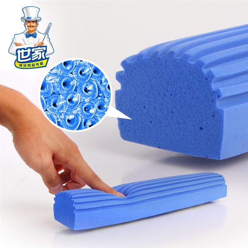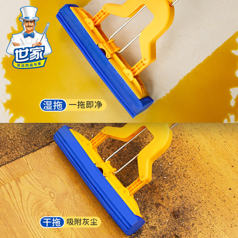 世家免手洗胶棉省力家用对折式挤水拖把卫生间地砖商用海绵拖把头