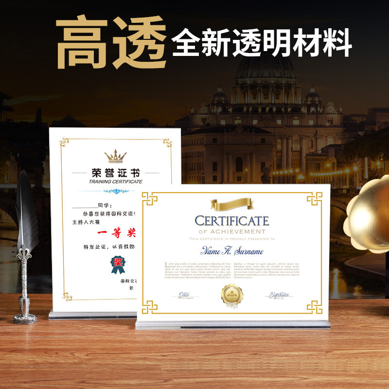亚克力a4纸奖状相框架展示透明摆台广告框架专利证书裱框双面立牌