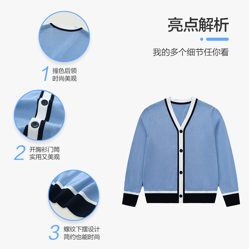 小学生校服开衫学院风女大童天蓝色毛衣男童薄款纯棉浅蓝色针织衫