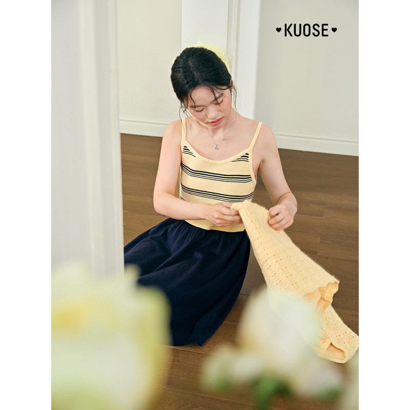 条纹吊带背心裙针织衫开衫