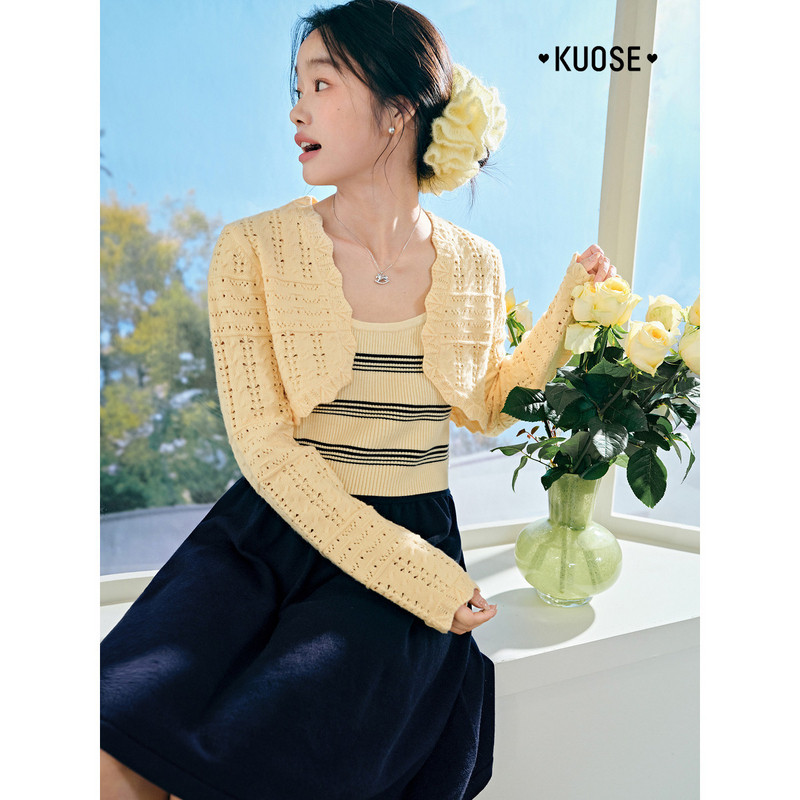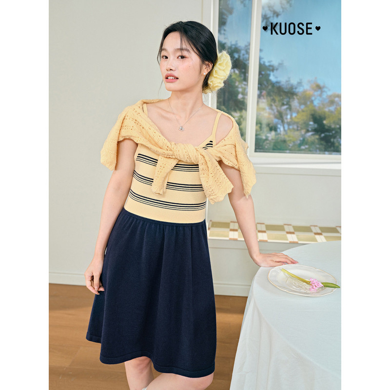 阔色条纹吊带背心裙针织衫开衫两件套装26春季新款女连衣裙上衣秋