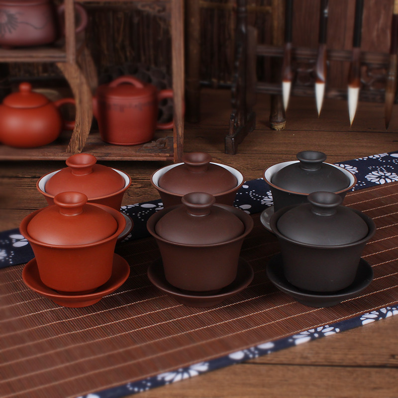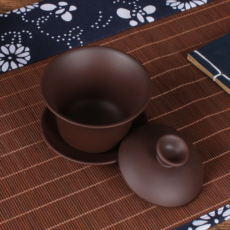功夫茶具家用茶碗紫砂三才碗茶杯大号陶瓷盖碗套装带盖冲泡茶碗