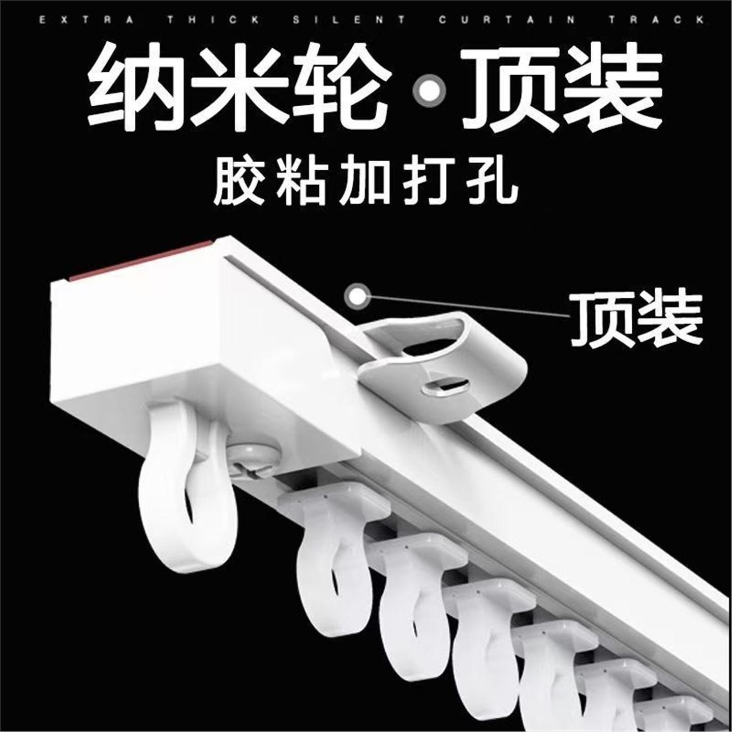 打孔式免钉式单轨滑轮挂钩窗帘杆滑轨床帘窗帘轨道免导轨滑道粘贴