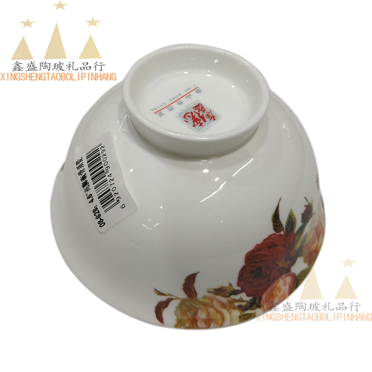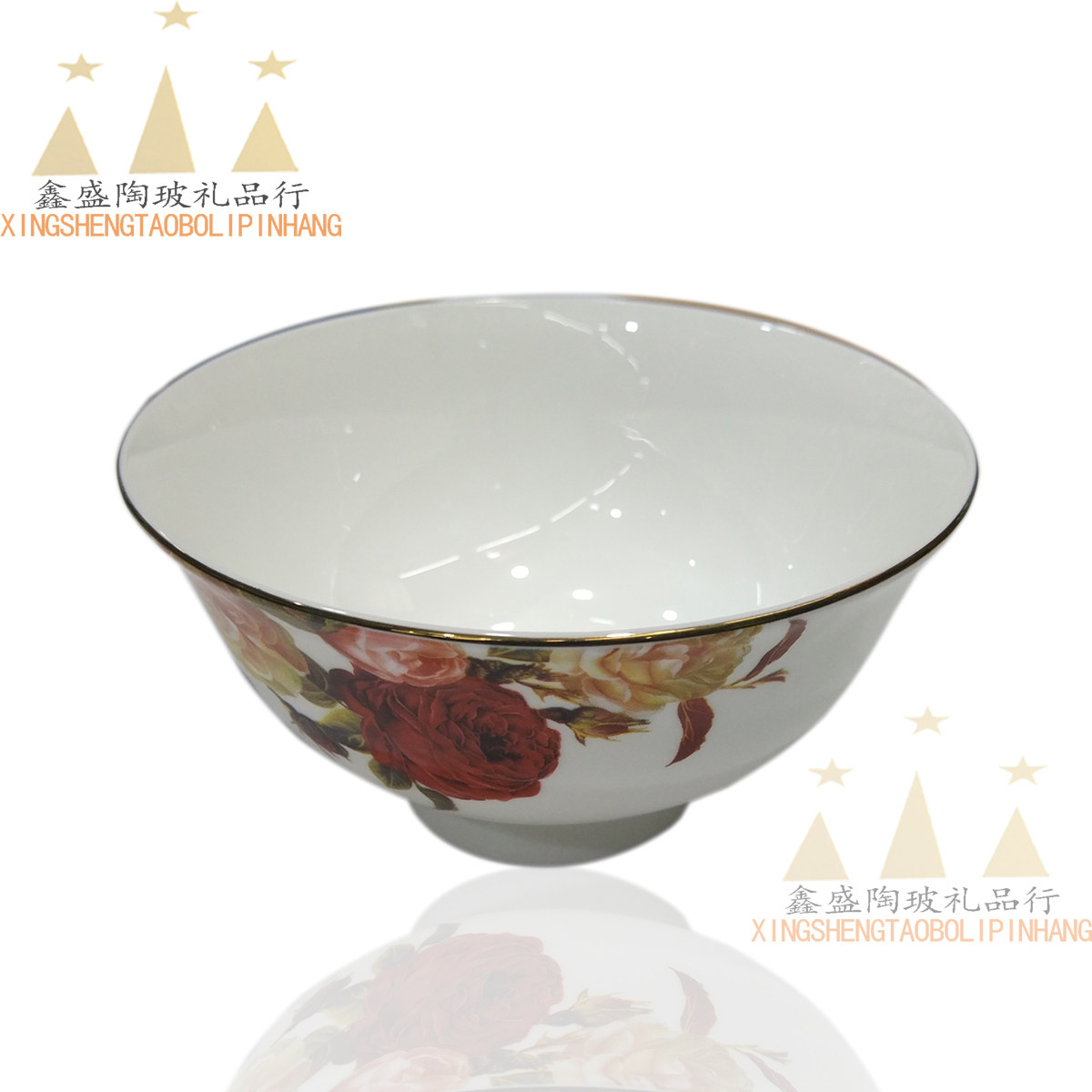 唐山骨瓷碗盘子中式家用结婚乔迁新居搬家好看无铅红玫瑰碗骨质瓷