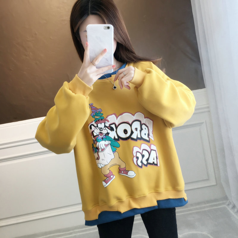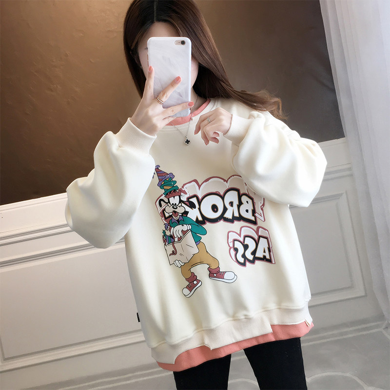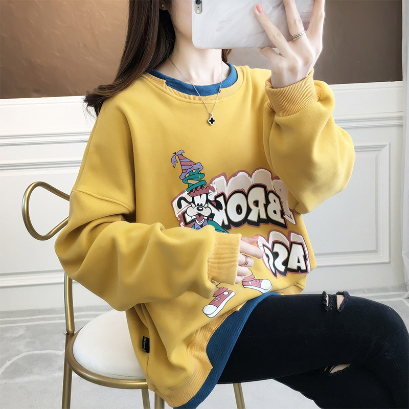 小个子卫衣女春秋韩版宽松原宿bf慵懒风薄款ins假两件上衣外套潮