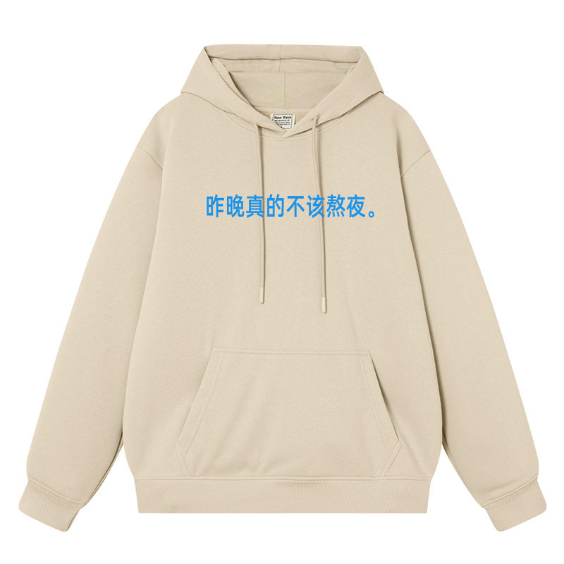秀洛昨晚真的不该熬夜搞笑文字秋冬连帽套头卫衣男女情侣装上衣服