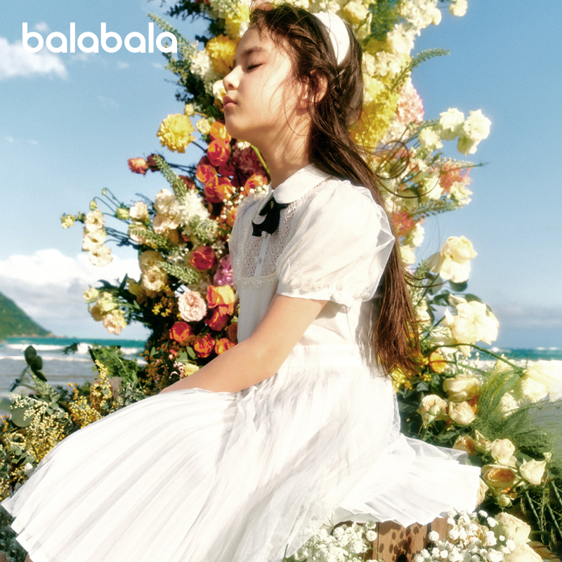 巴拉巴拉女童连衣裙中大童网纱公主裙儿童泡泡袖长裙夏装新款童装