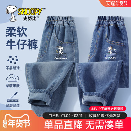 史努比男童牛仔裤春秋款