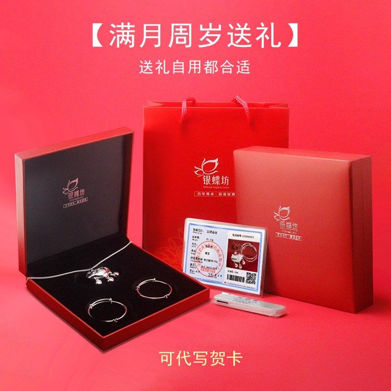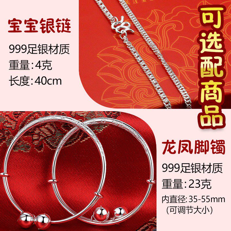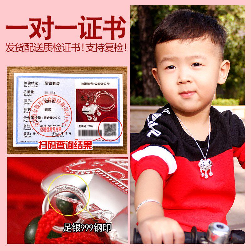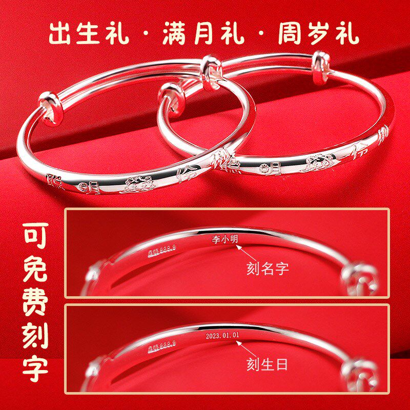 龙年宝宝银手镯999纯银长命锁儿童银锁小孩满月镯子男女婴儿银饰