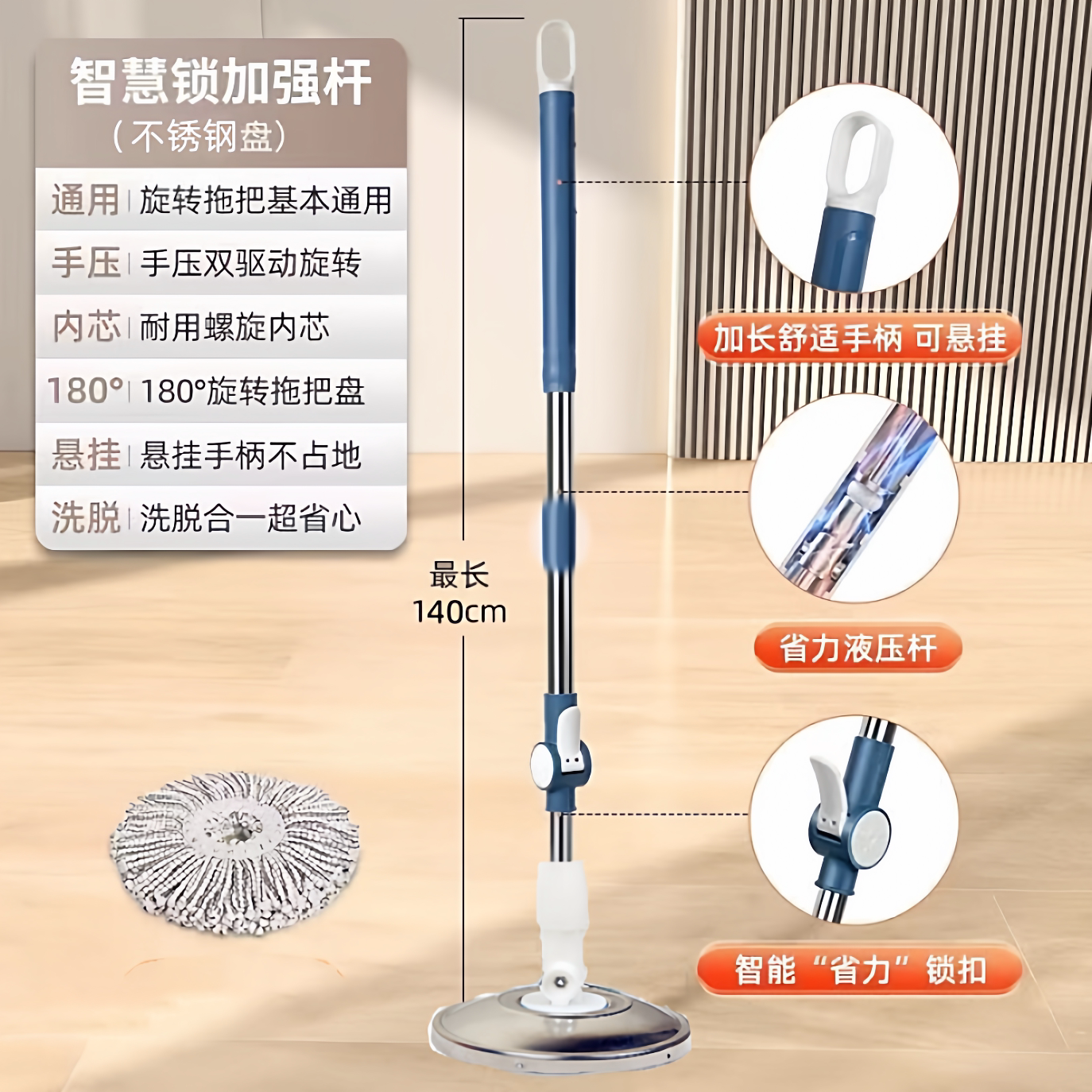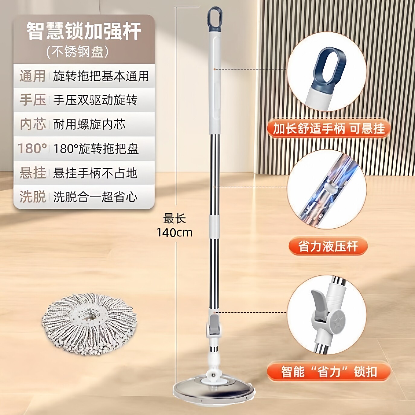 免手洗自洗旋转拖把家用懒单指操作高效甩干省力清洁工具不锈钢杆