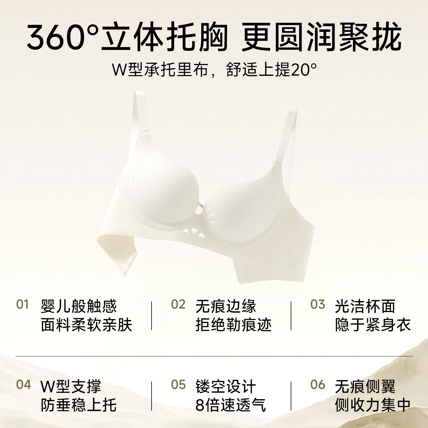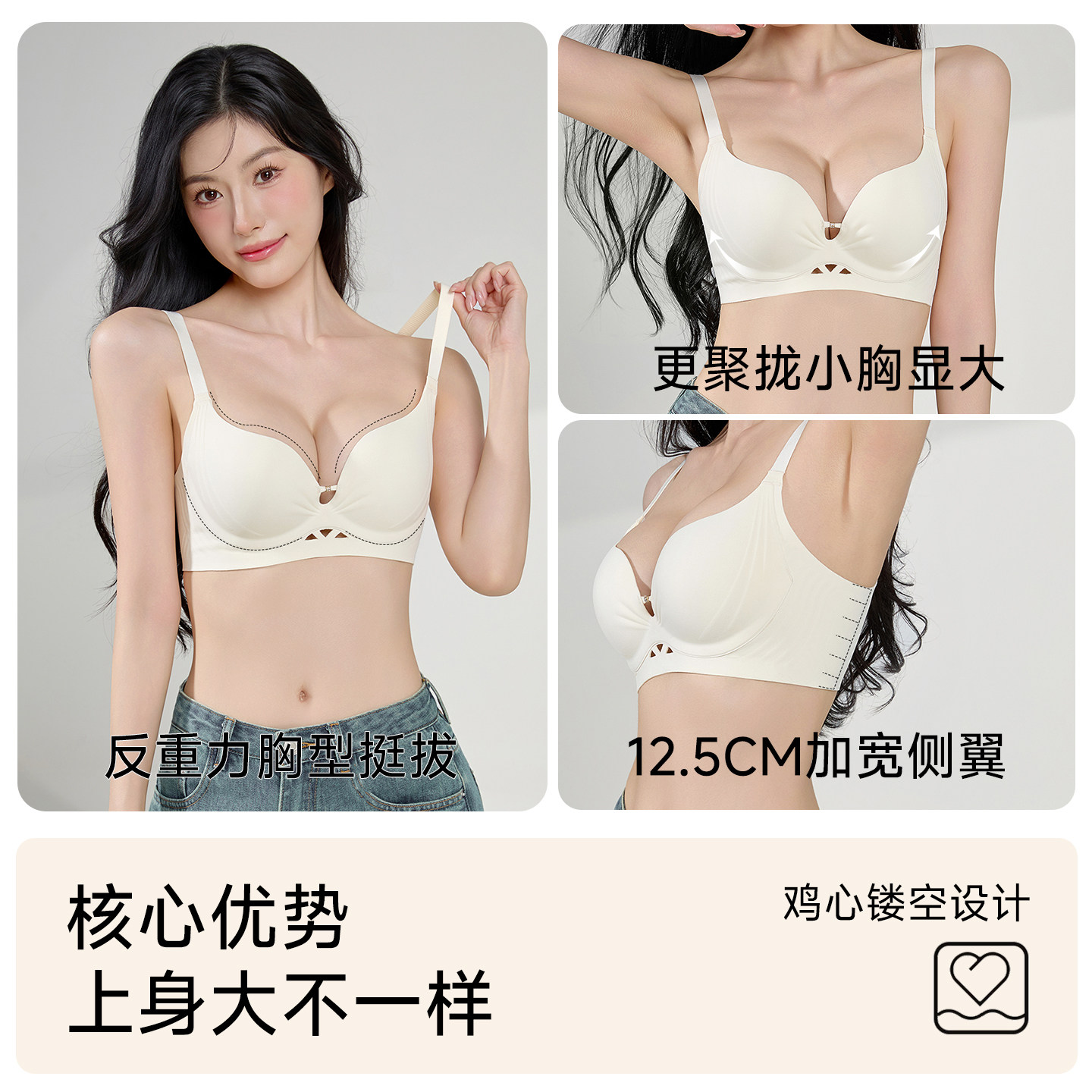 无痕内衣女聚拢小胸显大收副乳防下垂提拉上托圆圆胸U型美背文胸