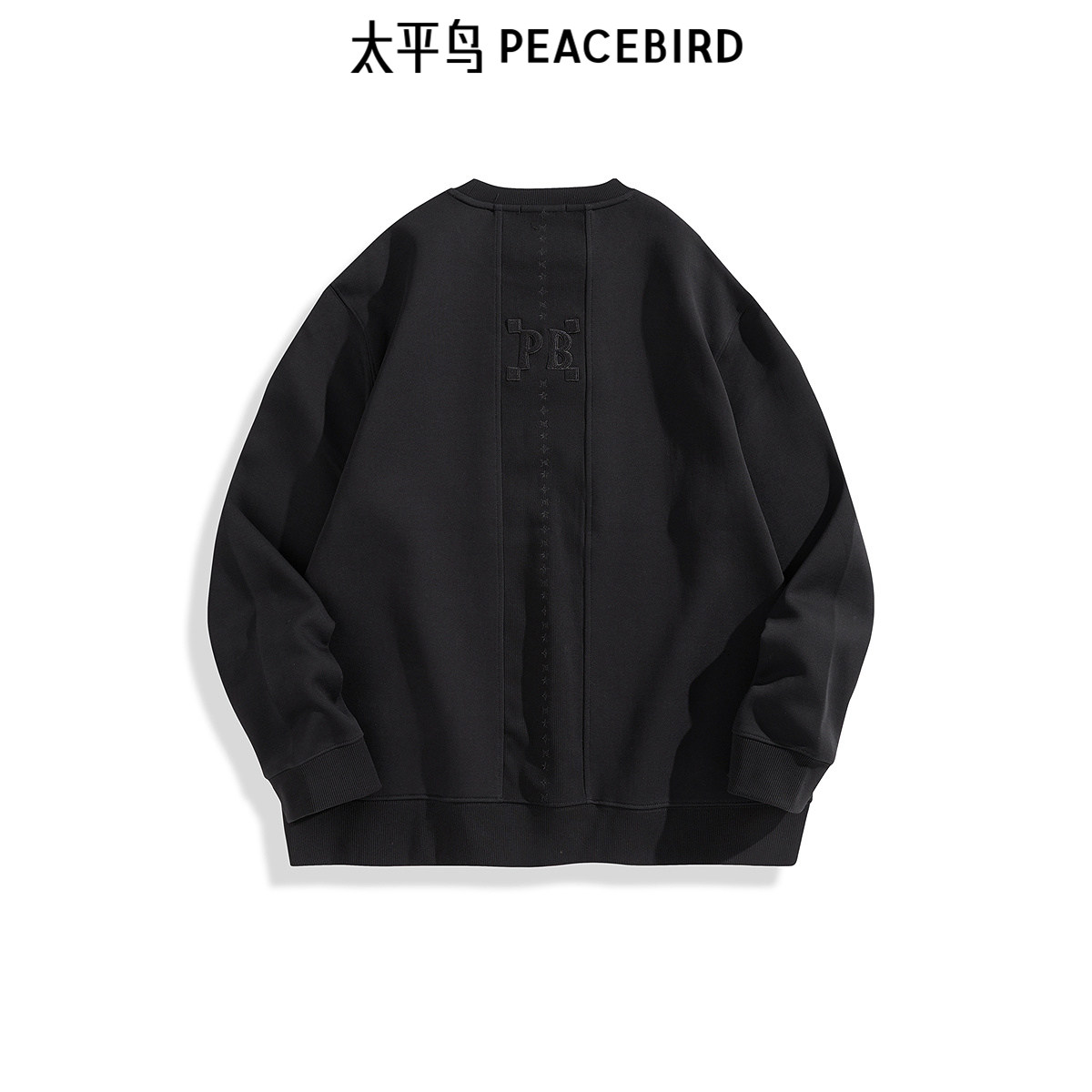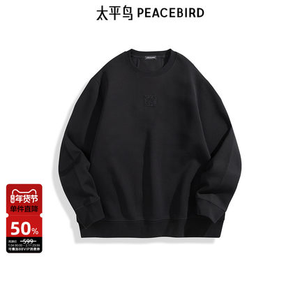 太平鸟男装 圆领拼接卫衣秋季宽松时尚刺绣男士上衣潮流