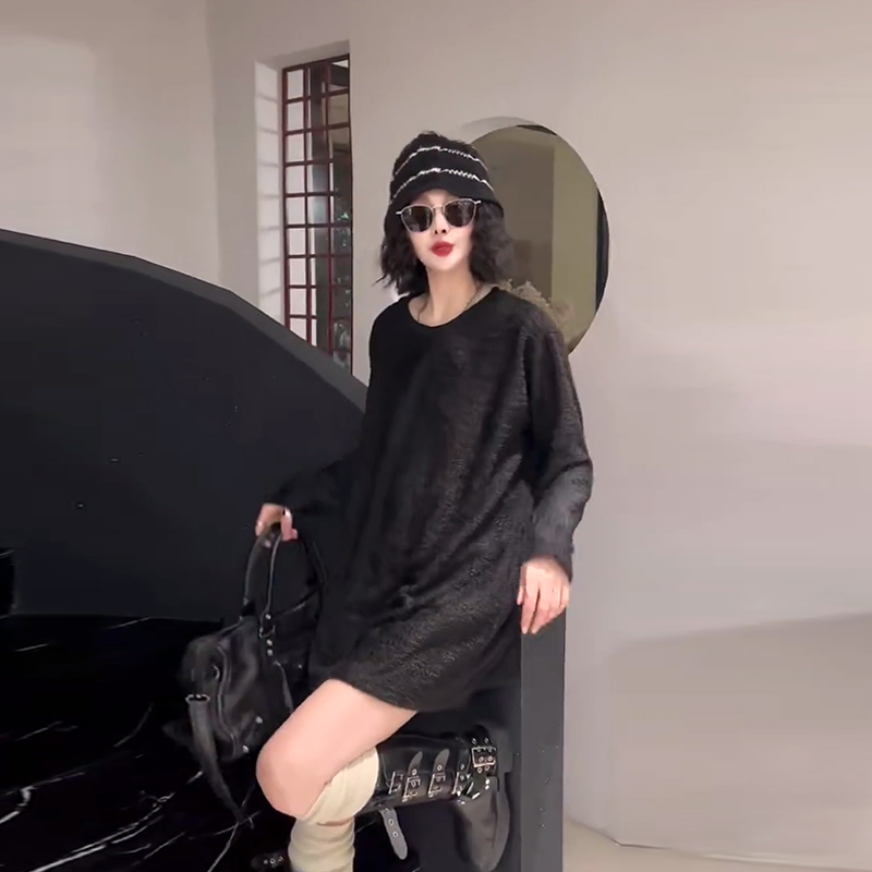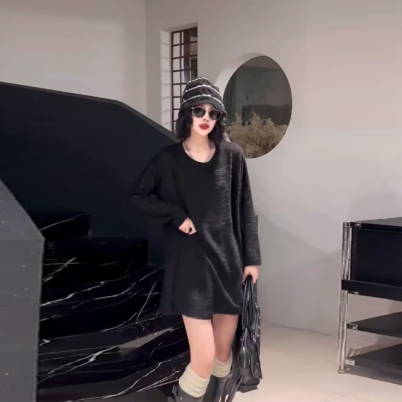加肥圆领长袖上衣宽松遮肚子大码女装纯色简约韩版净版百搭T恤衫