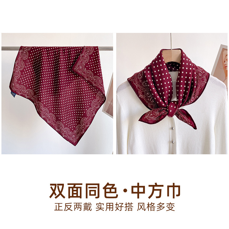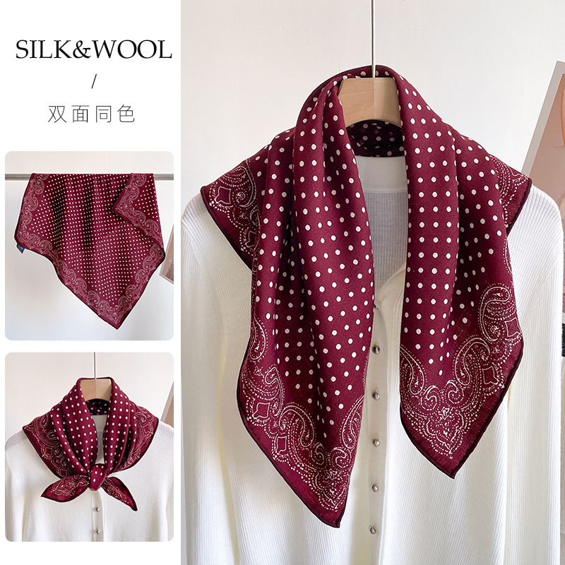红色真丝羊毛丝巾围巾女2025新款春秋季波点羊毛方巾丝巾女士