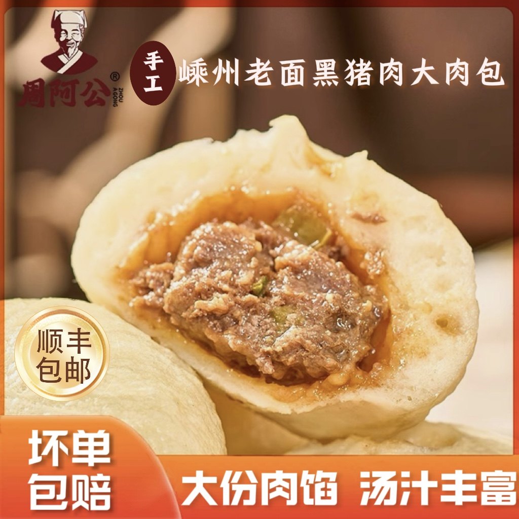 周阿公黑猪肉大肉包嵊州手工鲜肉老面包子速冻半成品儿童营养早餐