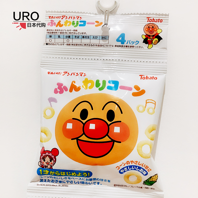 日本桃哈多/Tohato面包超人玉米圈宝宝饼干儿童零食原味4连包 1+