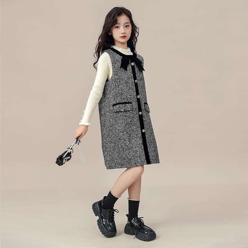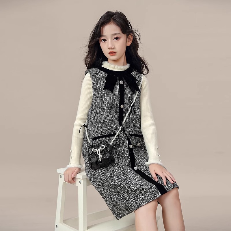 女童小香风背心裙套装中大童秋冬新款女孩洋气两件套连衣裙新年装