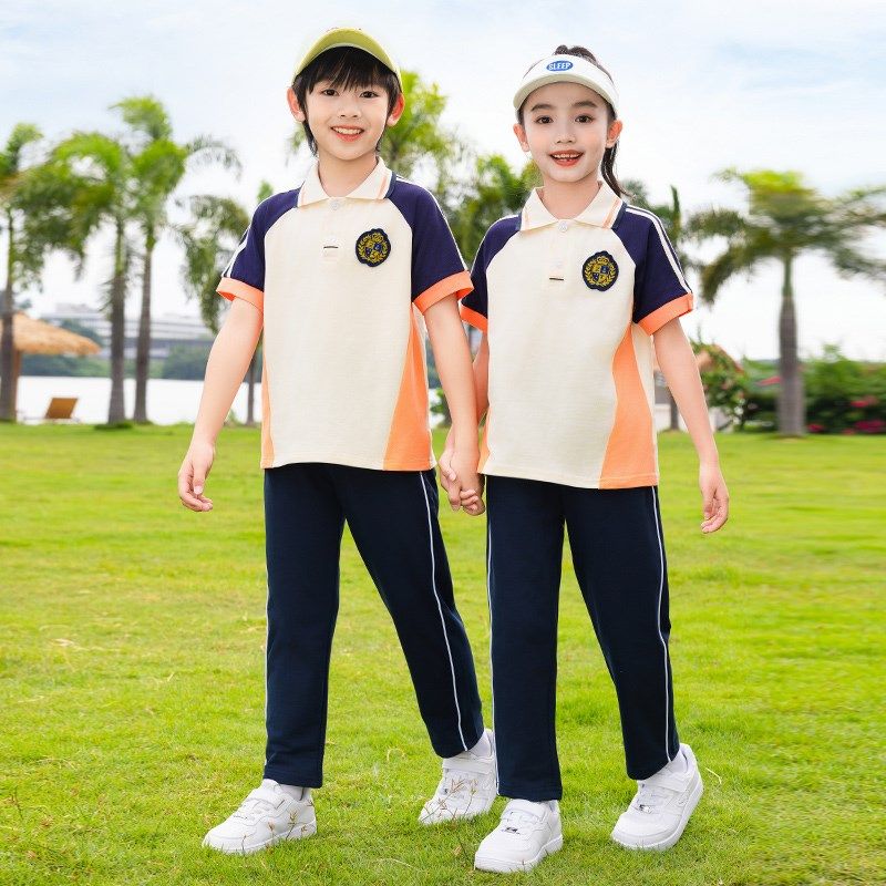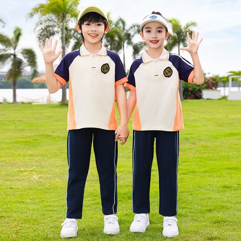 小学生夏季校服儿童班服短袖长裤运动服套装学院风幼儿园园服夏装